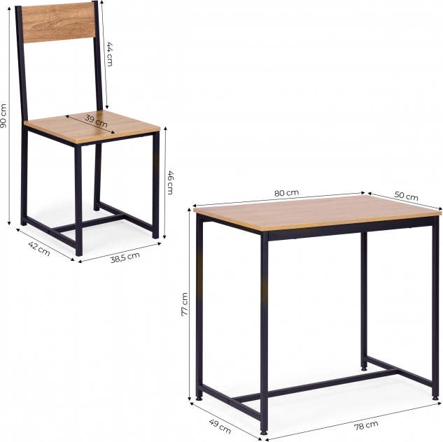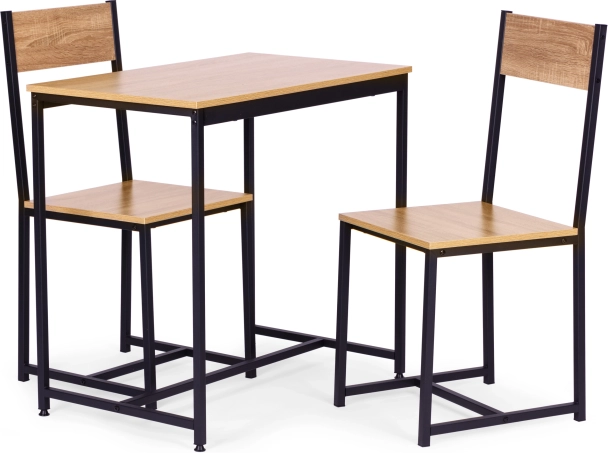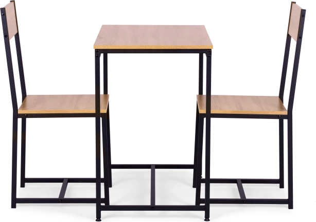 Ce set de meubles comprend une table robuste et deux chaises, parfait pour une vie moderne. Le design simple et polyvalent permet une intégration facile dans différents types d'intérieurs. L'ensemble offre une solution idéale pour les petits appartements, bureaux ou salles d'attente.