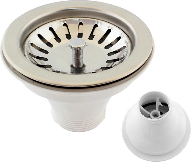 Bonde métallique robuste pour évier, complète avec les accessoires nécessaires à l’installation. Grâce à ses dimensions standard, elle se place facilement dans l’évier de cuisine.