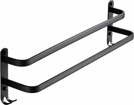 Porte-serviettes mural en métal au style loft moderne. Fabriqué en aluminium durable avec finition poudre noire mate, garantissant une longue durée de vie et une résistance à l’humidité et à l’usure. Cet accessoire pratique pour votre salle de bain offre deux bras pour suspendre les serviettes et des crochets supplémentaires en bas pour encore plus d’espace de rangement.