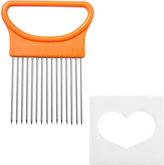 Poignée pratique pour couper les oignons. Les pointes des aiguilles en acier et la poignée confortable permettent de couper l’oignon en fines lamelles. Un capuchon de sécurité supplémentaire évite les blessures accidentelles lors du rangement.