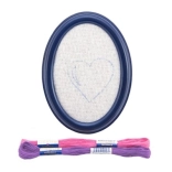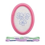 Cadre en plastique avec toile tendue et motif préimprimé, deux modèles supplémentaires à broder, fils de coton
