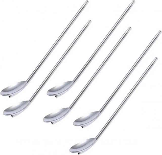 Set de 6 pailles/cuillères en acier élégantes et réutilisables. Chaque paille se termine par une cuillère, ce qui les rend parfaites aussi pour le café et les desserts. Elles apportent une touche impeccable à toute fête, même la plus exigeante. Fabriquées en acier inoxydable, elles garantissent des années d’utilisation sans problème. Elles ne modifient ni le goût ni l’odeur des boissons ou des desserts.