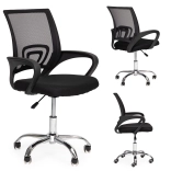 La chaise est équipée de mécanismes faciles à utiliser pour des réglages complets, ce qui la rend très conviviale. La maille résistante du dossier assure une bonne ventilation, tandis que la base métallique chromée à cinq roulettes offre stabilité et mobilité.