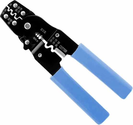 Outil universel de sertissage pour fiches et connecteurs, non isolés et isolés. Équipé d'une lame additionnelle pour la coupe des conducteurs. Un outil indispensable pour tout monteur de câbles et d’appareils électroniques, mais également utile pour un usage domestique courant.