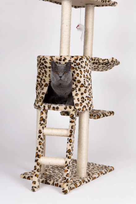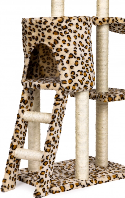 Offrez à votre chat un refuge sûr pour se reposer, griffer et jouer. Cet arbre à chat haut à motif léopard repose sur une base en MDF robuste et comporte des poteaux enroulés de sisal, qui encouragent l’instinct naturel de griffade tout en protégeant vos meubles. Il comprend aussi un belvédère supérieur pour surveiller tout l’espace.