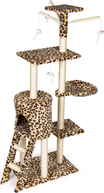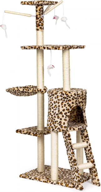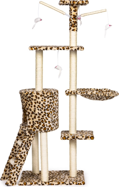 La disposition réfléchie de 5 niveaux facilite les ascensions et les sauts entre les plates-formes. La maisonnette spacieuse est idéale pour se cacher et dormir, tandis que le hamac rond offre une détente bercée. L’amusement est assuré par 4 souris suspendues à une ficelle et une petite échelle pratique qui aide à grimper et étire agréablement les muscles.