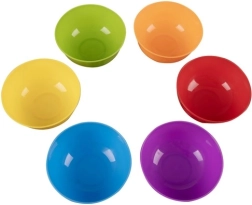 Les bols et figurines colorés aident les enfants à reconnaître les couleurs et à effectuer de simples comptages de manière ludique. Idéal pour la préparation préscolaire.
