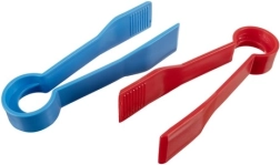 Deux pincettes légères en plastique encouragent une bonne prise en main, la coordination et la précision lors du déplacement des figurines vers les bols.