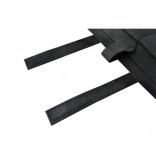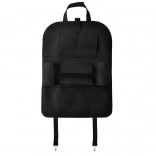 L’organisateur est fabriqué en feutre, ce qui garantit sa légèreté et sa facilité de manipulation. L’installation est rapide et intuitive : la partie supérieure se fixe à la partie inférieure de l’appuie-tête à l’aide d’une bande auto-agrippante, et la partie inférieure se fixe au siège avec des crochets métalliques.