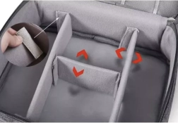 Organisez différents types de câbles et de petits accessoires dans plusieurs compartiments faciles d'accès et personnalisables.
