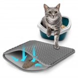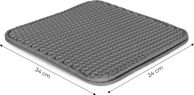 Pratique tapis à deux couches pour bac à litière, en élégant coloris gris de la marque PETSI, qui garde le pourtour de la toilette propre. Grâce à la couche supérieure à structure en maille, la litière dispersée est retenue, tombe à l’intérieur du tapis et se vide facilement. Le tapis est antidérapant, résistant, doux pour les pattes et facile à nettoyer.