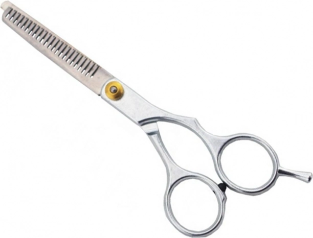 Ciseaux de coiffure ergonomiques de type désépaississants en acier inoxydable. Parfaits pour un usage professionnel comme pour la coupe à domicile. La lame possède une vis spéciale pour régler le jeu. Une butée en caoutchouc entre les poignées assure un fonctionnement silencieux. Un repose-doigt additionnel augmente la précision de coupe et réduit la fatigue de la main.