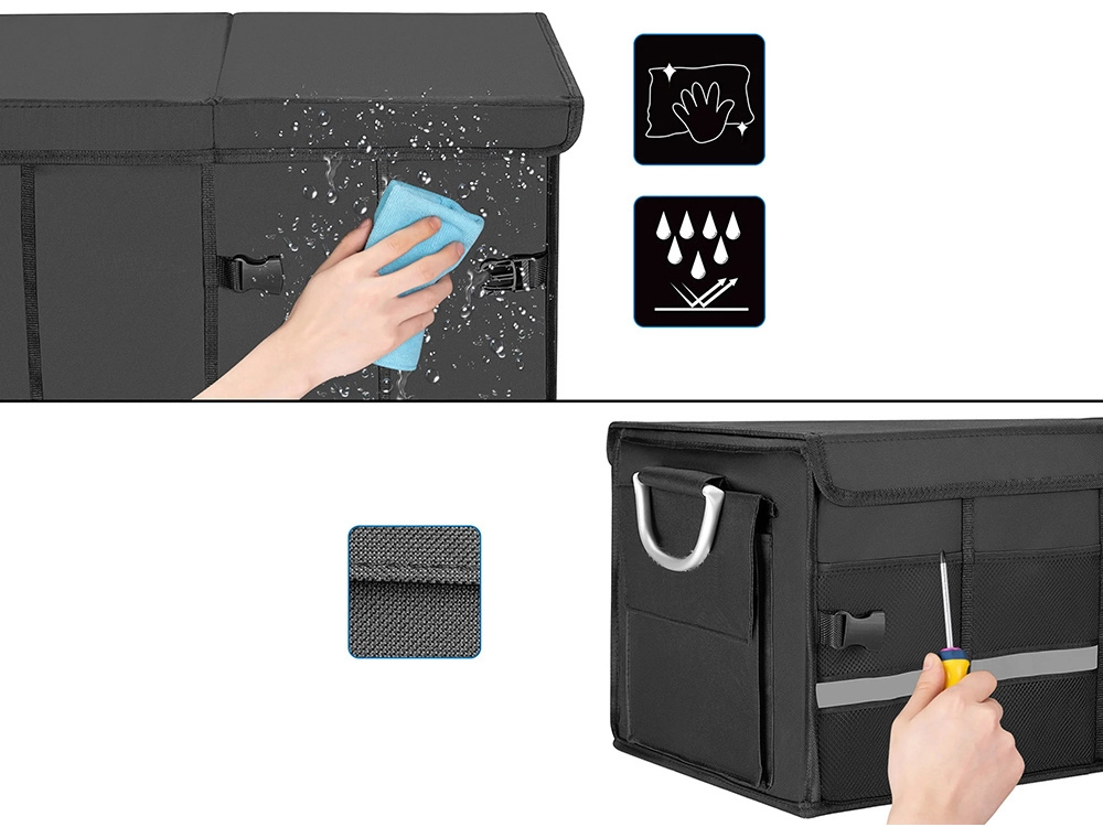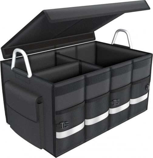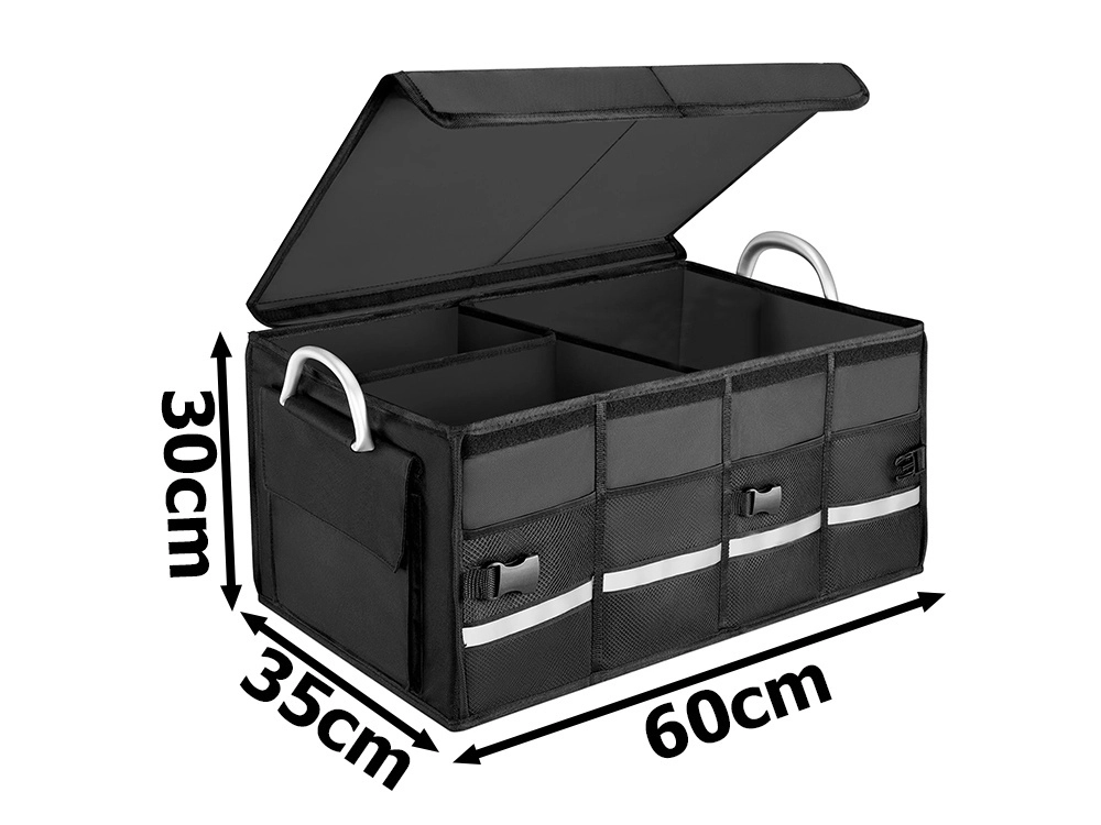 Pratique, l’organiseur de coffre maintient vos affaires en place et les protège du désordre et de l’humidité. Le couvercle avec fermeture évite que le contenu ne se renverse pendant la conduite, la construction robuste avec fond renforcé assure la stabilité et les poches latérales en maille ainsi que les compartiments vous aident à tout retrouver rapidement. Idéal au quotidien, pour les sorties et les longs trajets.