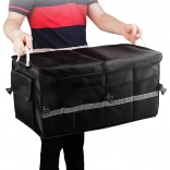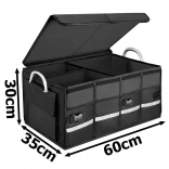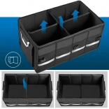 Mettez définitivement de l’ordre dans votre coffre. Cet organiseur spacieux pour coffre de voiture avec couvercle offre un volume de 60 l, un matériau imperméable et de nombreuses poches pour ranger clairement outils, accessoires et courses. Grâce à ses poignées robustes et à sa structure pliable, vous le transportez et le rangez facilement lorsqu’il n’est pas nécessaire.