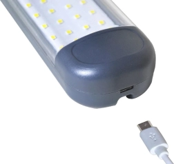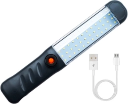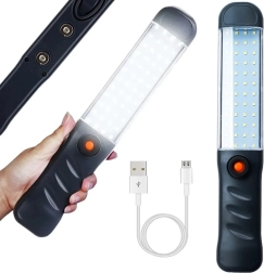 Lampe d’atelier LED compacte avec technologie COB et 48 diodes, offrant un éclairage puissant et uniforme pour le travail en atelier, en voiture ou à la maison. Grâce à sa batterie rechargeable via USB, à son crochet pivotant et à ses aimants puissants, elle se fixe facilement partout et libère vos mains. Sa poignée ergonomique et ses plusieurs modes de luminosité garantissent une utilisation confortable et économe.