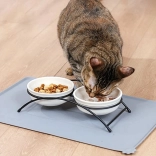 Ce tapis attrape efficacement tout déversement de nourriture ou d'eau des bols.