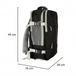 Élégant sac à dos de voyage noir adapté pour une utilisation quotidienne et pour voyager. Grâce à ses dimensions, il est idéal comme bagage à main pour la plupart des compagnies aériennes, avec un port USB intégré pour un chargement facile.