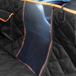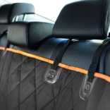 La housse PETSI couvre toute la banquette arrière ainsi que l’arrière des sièges avant, protégeant de l’humidité, de la boue et des poils. Grâce à sa construction matelassée résistante, elle est confortable pour l’animal et respecte l’intérieur du véhicule.