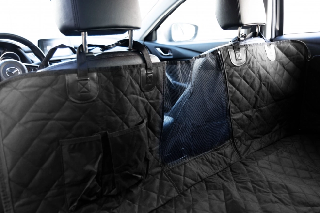 La housse matelassée et résistante couvre toute la banquette arrière et protège la sellerie des poils, de la boue et des rayures. Deux poches gardent la laisse, les friandises et les petits objets toujours à portée de main.