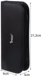 Les ciseaux droits, désépaississeurs et courbés sont complétés par un peigne métallique, 2 pinces, un chiffon de nettoyage et une clé de réglage. Le tout rangé de manière ordonnée dans un étui robuste.