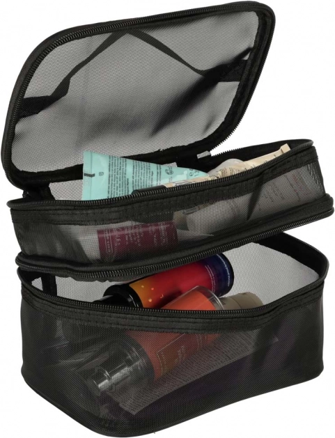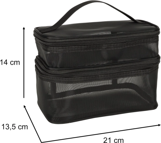La trousse de toilette de voyage est indispensable pour chaque déplacement. Grâce à sa construction à deux niveaux, elle permet une vue organisée et un rangement optimal des produits de beauté. La fermeture à glissière double sens assure sécurité et confort d’utilisation. La trousse est fabriquée dans un matériau respirant qui permet de retrouver facilement les produits rangés.