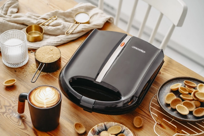 Des biscuits aux noix maison garnis de crème en 2 minutes ? Avec le gauffrier MESKO XL, c’est possible à tout moment. Sa grande surface de cuisson prépare en un cycle 24 grandes demi-coquilles, que vous assemblez facilement en noisettes fourrées – sucrées ou salées. Les plaques antiadhésives assurent un démoulage net et un nettoyage rapide.