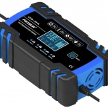 Chargeur compact et intelligent pour batteries 12V/24V avec écran numérique et mode réparation. Offre une charge rapide et sûre, propose des modes hiver et été, une protection automatique et une régénération par impulsions pour raviver les accumulateurs faibles. Idéal pour voitures, motos et autres batteries de véhicules.
