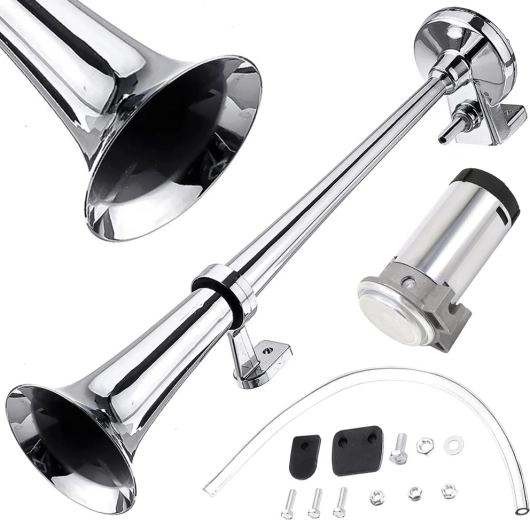 Ce klaxon tubulaire combine un son puissant avec une longue durée de vie. La trompette chromée et les matériaux de qualité garantissent une résistance à la corrosion et à l’usure mécanique, pour être entendu à grande distance pendant de longues années.