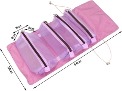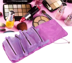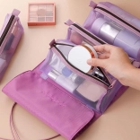 Fini le chaos dans la trousse de toilette. Cet organisateur cosmétique enroulable 4‑en‑1 offre quatre grandes pochettes transparentes zippées, que vous pouvez retirer et réorganiser selon vos besoins grâce au velcro. Une fois plié, il se maintient solidement avec des sangles élastiques.