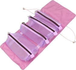 Idéal pour cosmétiques, bijoux, articles d’hygiène et petits accessoires. Grâce au crochet de suspension, vous l’accrochez facilement dans la salle de bain ou en voyage. Son textile léger et ses dimensions compactes en font un compagnon idéal pour le sac à main, le sac à dos et la valise.