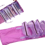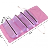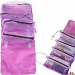 Organisateur de voyage pratique pour cosmétiques avec quatre pochettes amovibles zippées et option de suspension. Grâce aux compartiments transparents, tout reste visible et bien ordonné. L’organisateur se roule facilement et prend un minimum de place. Idéal pour le sac à main comme pour la valise afin d’assurer ordre, accès rapide et rangement sécurisé des cosmétiques et petites affaires.