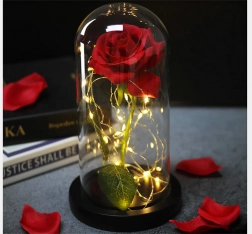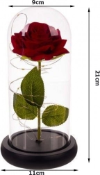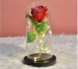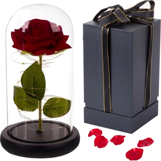 La cloche en verre protège la rose de la poussière et des dommages. Le socle noir stable maintient fermement la décoration en place.