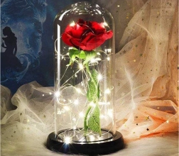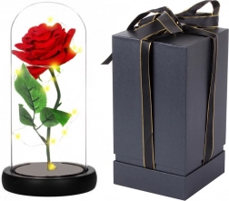 Cette décoration stylée, inspirée du conte « La Belle et la Bête », sublimera tout intérieur. Les petites lumières délicates enroulées autour de la tige de la rose illuminent le salon, la chambre ou une table de fête et apportent une chaleureuse touche féerique. Grâce à son emballage élégant, le cadeau est prêt à être offert sans autre emballage.