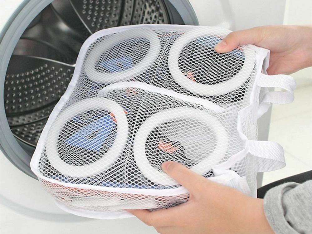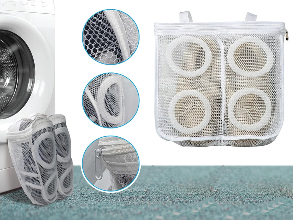 La maille dense et la fermeture éclair protègent les chaussures des frottements et des chocs, tout en évitant d’endommager le tambour du lave-linge.