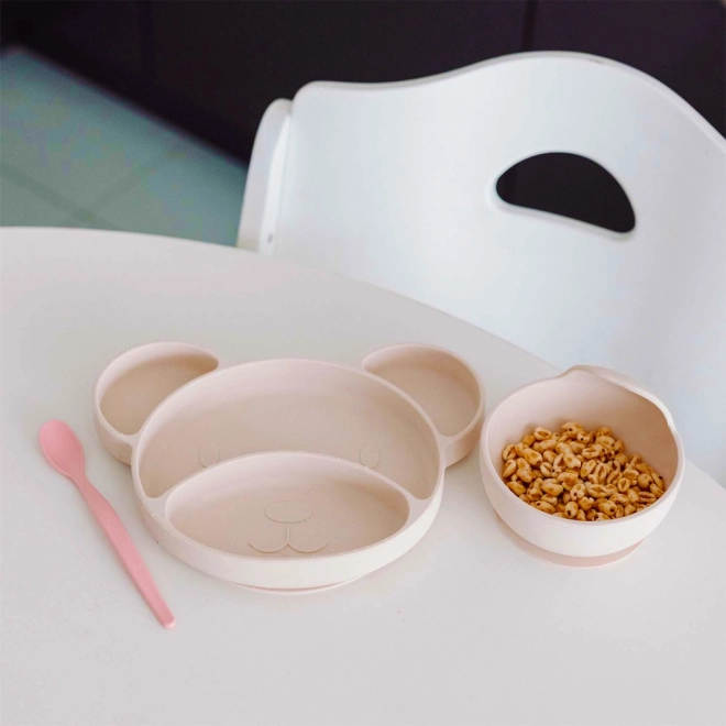 Pratique, l’assiette en silicone avec ventouse en forme d’ourson est idéale pour les premières purées et la méthode DME (BLW). Grâce à ses quatre compartiments, vous séparez facilement les aliments, tandis que la ventouse antidérapante maintient l’assiette en place. Fabriquée en silicone 100 % de qualité alimentaire, elle est durable et incassable, compatible lave-vaisselle et micro-ondes. Sans BPA, PVC ni phtalates.