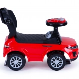 Entre les roues avant et arrière se trouvent des petits patins qui empêchent le véhicule de se renverser. Grâce à eux, l’enfant est en sécurité même lors d’un jeu intensif ; si le véhicule s’incline trop, les patins s’appuient au sol et stabilisent le porteur.
