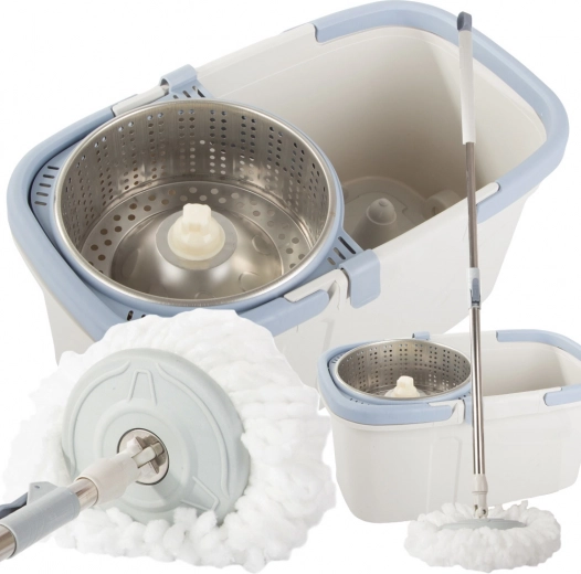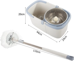 Ce balai rotatif dispose d'une tige mobile réglable qui vous permet de nettoyer facilement même les endroits difficiles d'accès. Le seau est équipé d'un système rotatif qui assure un rinçage et un essorage efficaces de la tête du balai.