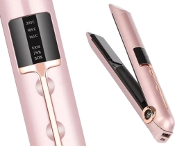 Découvrez la liberté du coiffage sans câble. Les plaques céramiques chauffent uniformément, protègent les cheveux des dommages et les laissent lisses et brillants. Grâce aux trois températures préréglées, adaptez facilement les soins aux cheveux fins, colorés ou épais. L’écran LCD affiche clairement la température choisie et l’état de la batterie.