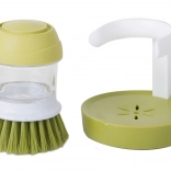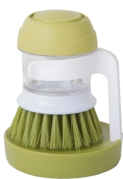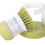Brosse vaisselle pratique avec distributeur de liquide vaisselle intégré et support stable pour une cuisine propre et bien organisée. En appuyant sur le bouton supérieur, vous libérez une dose précise de produit, pour un lavage rapide et hygiénique. Grâce à ses poils denses, elle élimine facilement les saletés tenaces et les résidus incrustés, tandis que le support égouttoir garde le plan de travail sans flaques.