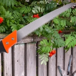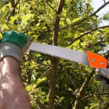 Scie de jardin pratique pour une élagage rapide et précis des branches. Elle offre une lame durable, une poignée ergonomique antidérapante et un étui de protection avec passant de ceinture pour un port sûr et une utilisation facile au jardin comme au verger.