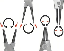 Deux paires pour les anneaux intérieurs et deux paires pour les anneaux extérieurs Seeger couvrent la plupart des interventions en pratique automobile et mécanique.
