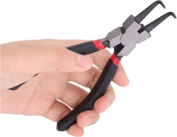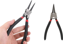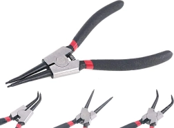 Jeu complet de pinces pour anneaux Seeger pour une manipulation rapide et sûre des anneaux intérieurs et extérieurs. Corps en acier de qualité et poignées antidérapantes confortables pour une prise sûre, tandis que les pointes droites et coudées facilitent le travail dans les zones difficiles d’accès. Idéal pour les ateliers auto/moto, l’industrie et l’atelier domestique.