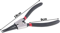 À utiliser pour le montage et le démontage des anneaux Seeger dans les roulements, transmissions, freins ou embrayages. La longueur compacte de 18 cm permet un travail précis même dans les espaces restreints et la forme ergonomique minimise la fatigue de la main lors d’un usage prolongé.