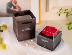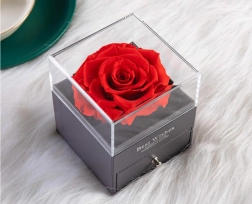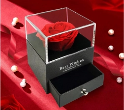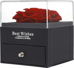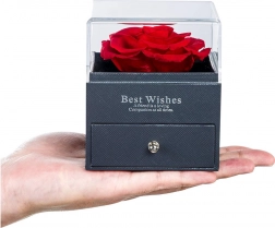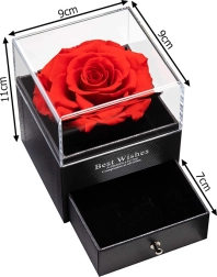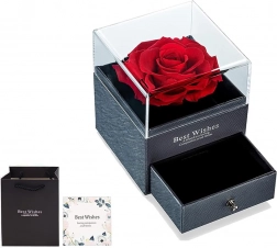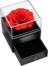 Cette rose éternelle est un symbole d'amour et de beauté qui ne se fane jamais. C'est le cadeau parfait pour un anniversaire, un anniversaire ou comme preuve d'émotion lors d'un instant exceptionnel. Grâce au tiroir pratique dans la boîte, vous pouvez ajouter une autre surprise comme des bijoux ou un message personnel.
