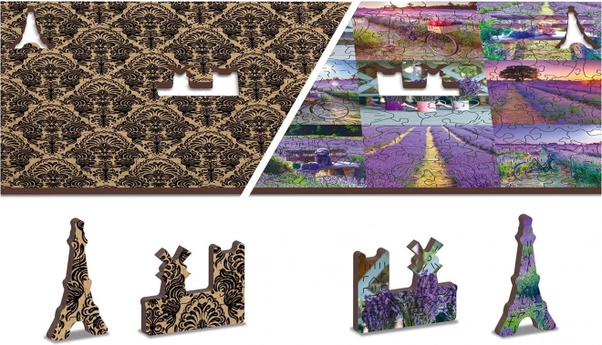 Vivez une belle aventure avec le puzzle en bois WOODEN CITY au motif France lavande. Grâce aux pièces découpées au laser aux formes uniques représentant des animaux, des bâtiments ou des objets, l’assemblage prend une nouvelle dimension. Au verso, vous trouverez un motif répétitif qui facilite l’assemblage par les formes.