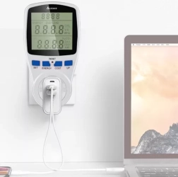 Le mesureur intelligent de consommation d’énergie vous aide à repérer les appareils énergivores et à optimiser la consommation à la maison ou au bureau. Grâce à l’écran LCD clair, vous voyez la tension (V), le courant (A), la fréquence (Hz), la puissance instantanée ainsi que minimale et maximale (W), l’énergie consommée (kWh) et, après saisie du tarif, les coûts précis.