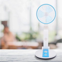 Ce ventilateur de table compact et portable avec lumière LED intégrée apporte de la fraîcheur à la maison, au bureau et en déplacement. Grâce à la recharge USB et à la batterie intégrée, il offre une véritable liberté sans câble. Profitez d’un fonctionnement silencieux, d’un réglage continu de la vitesse et d’une inclinaison réglable pour un flux d’air ciblé, complétés par 8 LED pour un éclairage pratique.