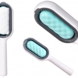 La brosse de toilettage en silicone 3‑en‑1 combine brossage efficace, lavage délicat et retrait des poils sur textiles. On peut poser une lingette humide sur le coussinet en silicone afin de rincer légèrement le pelage pendant le brossage, ce qui facilite la collecte des poils tombés et laisse le poil propre et brillant.