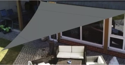 La forme triangulaire 4 × 4 × 4 m crée une zone d’ombre agréable au-dessus de la terrasse ou du jardin. Le matériau réduit la surchauffe et permet la circulation de l’air.