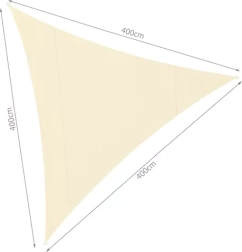 Pratique, le voile d’ombrage triangulaire de 4 × 4 × 4 m en beige offre une protection solaire efficace, réduit la température sous la toile et permet une circulation d’air optimale. Grâce à son matériau déperlant, il sèche rapidement, résiste à l’humidité et à la moisissure, et sa construction robuste avec anneaux en D métalliques facilite la tension et l’ancrage.